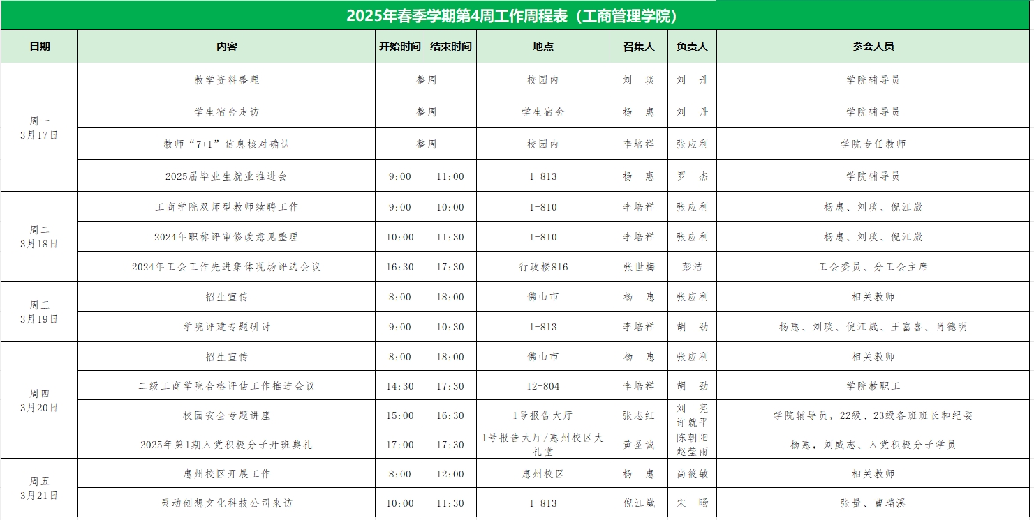 suncitygroup太阳集团2025年春季学期第4周工作周程表