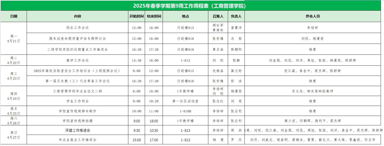 suncitygroup太阳集团2025年春季学期第9周工作周程表
