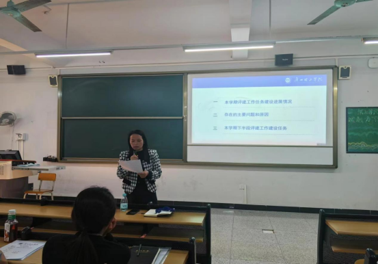 评建工作建设,完成第三轮自评报告,持续推进教师磨课,开展2批次骨干教师教学能力培训,组织青年教师职业发展规划编制,持续推进教风学风建设,完成评建工作绩效考核,完成专家校内外考察点确认,完成优秀案例初选,组织学习合格评估新政策;