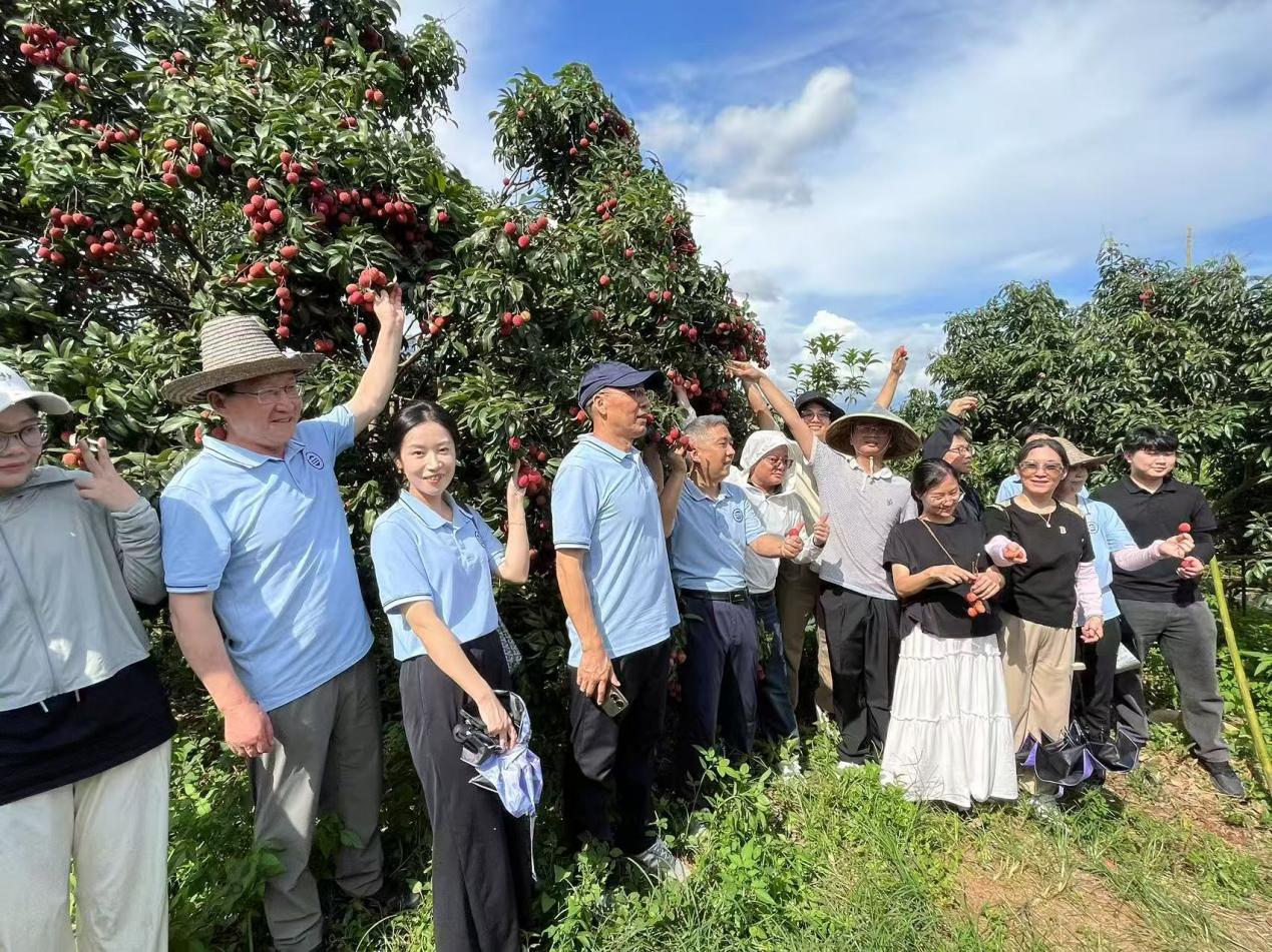 清晨,寿星教师们齐聚增城荔枝文化公园,在郁郁葱葱的荔林中开启了一场别开生面的采摘活动。老师们三两结伴,亲手摘下晶莹饱满的荔枝,欢声笑语间交流采摘技巧,分享岭南佳果的甘甜。党委书记杨惠现场即兴赋诗一首,以"红云满枝头,桃李共此时"寄语教师们如荔枝般硕果累累;院长李培祥更化身"科普达人",为大家讲解增城荔枝的千年文化,寓教于乐中展现工商学院的人文关怀。