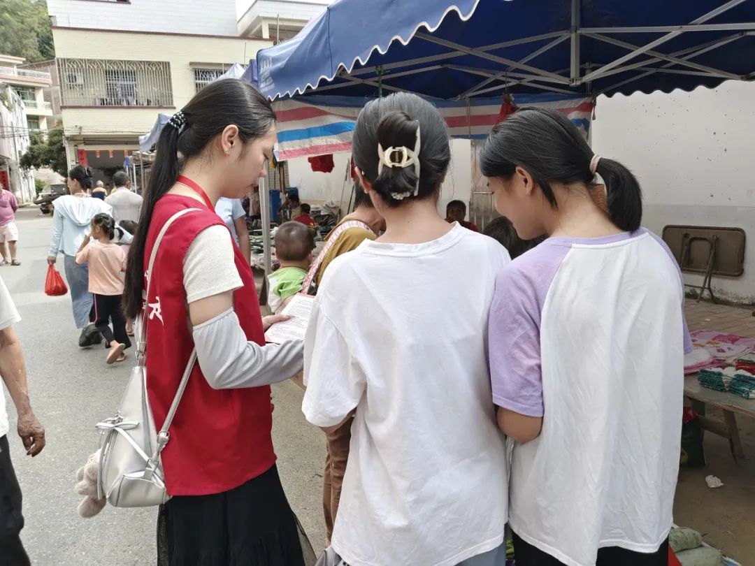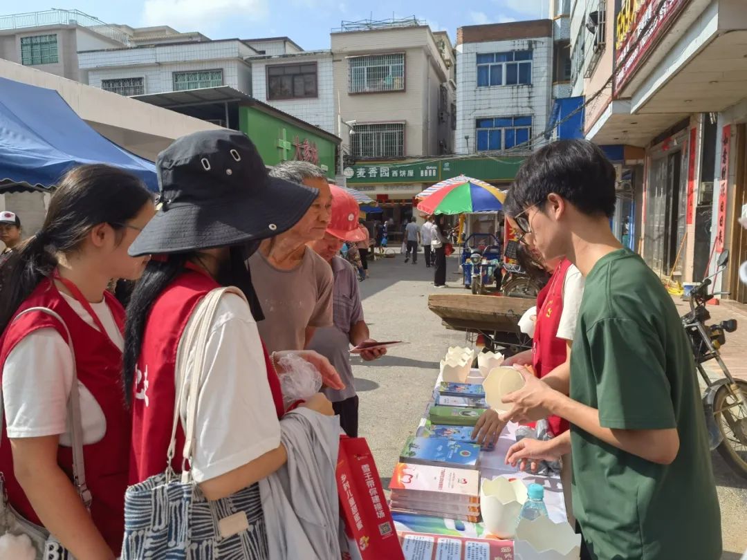 在参观完加益中学后,实践队队员们前往加益镇农贸市场开展“国家资助政策下乡行”活动。队员们向群众发放精心准备的宣传手册,并围绕国家助学贷款、助学金等政策内容展开详细解读,他们用通俗直白的语言,将复杂的政策流程逐一拆解说明,把政策优势和实际效果讲得透彻明白。此外,队员们还以自身真实经历为例,生动讲述如何借助国家资助政策跨越经济困境,切实消除“因贫失学”的担忧。对于群众提出的疑问,队员们也都耐心倾听、一一解答,确保每一位群众都能消除疑惑、理解政策。