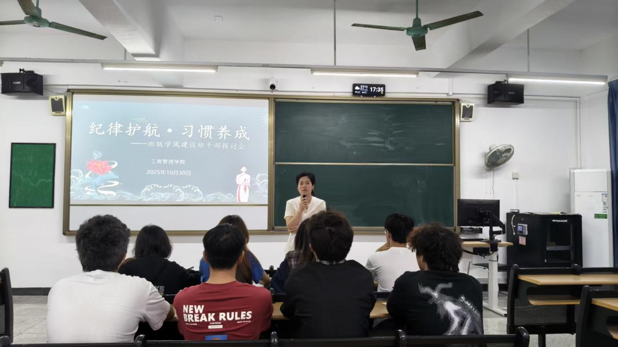 交流环节中,各班班干部聚焦“纪律细节与学风建设”主题,积极分享、深入探讨,师生互动热烈。针对梳理出的共性问题,辅导员建议以“课堂纪律+学习互助”为两大抓手:既要引导同学们养成按时到课、专注听讲的良好习惯,也要推动组建学习小组,开展备考互助、笔记分享等活动,切实做到“纪律筑基、学习提质”。