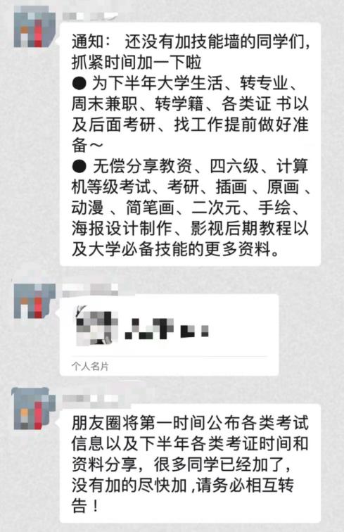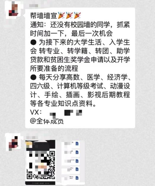 第一种骗子打着高校“新生群”“报到群”“老乡群”名义,进行收费、骗取新生钱财的微信群、QQ群不在少数。有的山寨群设置为缴费入群,进群先要收取一定金额;有的山寨群本质是“广告群”,建立者往往通过发兼职广告赚提成;有的山寨群内会有假冒的“学长学姐”私聊,推销商品,甚至和新生套近乎“借钱”,一段时间后便无影无踪,还钱没了下文。