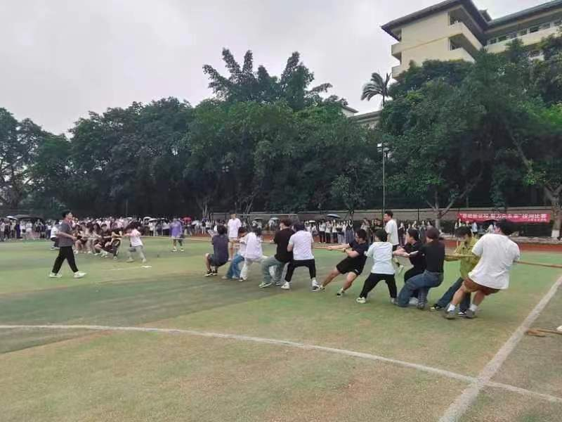 (何秋妍)4月22日下午三点半,suncitygroup太阳集团于小足球场举行“凝绳聚力,拔出精彩”趣味拔河比赛。此次活动旨在丰富学生的课余文化生活,增进学生之间的交流,培育学生的团队协作能力,增强班级凝聚力和集体荣誉感。